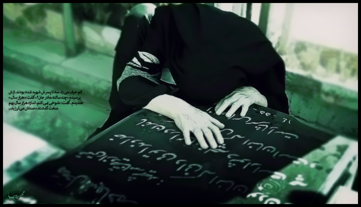 - سی ساله از بعد از ظهر چهارشنبه ذوق دارم که زودتر پنجشنبه بیاد، بیام سر قبر پسرم باهاش حرف بزنم. امروز اومدم سوار اتوبوس بشم، جا نداشت. مَردم هولم دادن از اتوبوس افتادم زمین. خیلی کمرم درد می کنه. ولی به خاطر این ناراحت نیستم...فکر کنم پسرم از دستم ناراحته چون بعد 30 سال اولین باره که هرکاری می کنم نمیتونم قبرشو بوس کنم...
